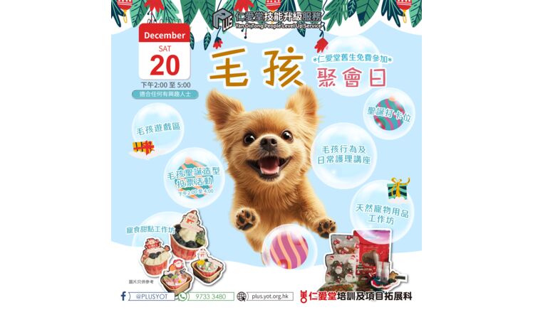 日期:2025年12月13日 (星期六) 時間:上午09時30分 至 下午12時30分 時間:下午02時00分 至 下午05時00分 地點:屯門啟民徑18號仁愛堂賽馬會社區及體育中心2樓仁愛堂賽馬會職涯發展及創業支援中心225室 對象:寵物美容從業員;或擁有相關寵物美容經驗者;或已完成ERB「寵物美容及店務助理」課程人士 學費:正價$1,800 I ERB舊生優惠價$1,600(已包工具) ***仁愛堂員工可享額外優惠***