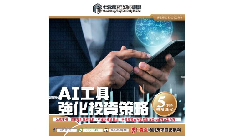 詳情 上課日期:2026年2月28日 (星期六) 時間:上午11時00分 至 下午5時00分 (中間一小時午休) 地點:觀塘成業街7號寧晉中心16樓H室(東廣場樓上) 對象:有意運用AI助投資資料分析者、想更有效閱讀公開財報、數據與走勢圖者,追求理性決策的初中階學員 收費: 正價$800 I 會員優惠價$720 ***仁愛堂員工可享額外優惠